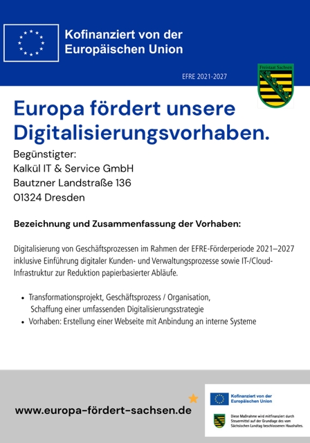 Im Zuge der Förderung werden Maßnahmen zur Digitalisierung von Geschäftsprozessen im Rahmen der EFRE-Förderperiode 2021–2027 umgesetzt, inklusive Einführung digitaler Kunden- und Verwaltungsprozesse sowie IT-/Cloud-Infrastruktur zur Reduktion papierbasierter Abläufe.